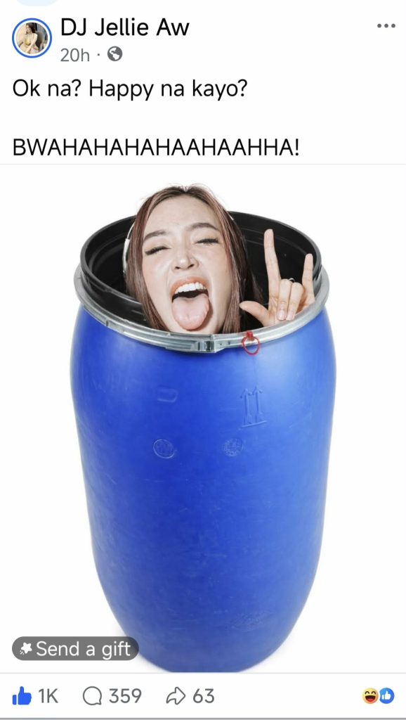Komento rito ni Jellie: “Ok na? Happy na kayo? BWAHAHAHAHAAHAAHHA!”